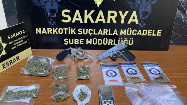 Sakarya’da düzenlenen operasyonlarda, 112 gram metamfetamin, 2 sentetik hap, 0,50 gram skunk, 2 ruhsatsız tabanca, 3 şarjör ve 41 fişek ele geçirildi.
